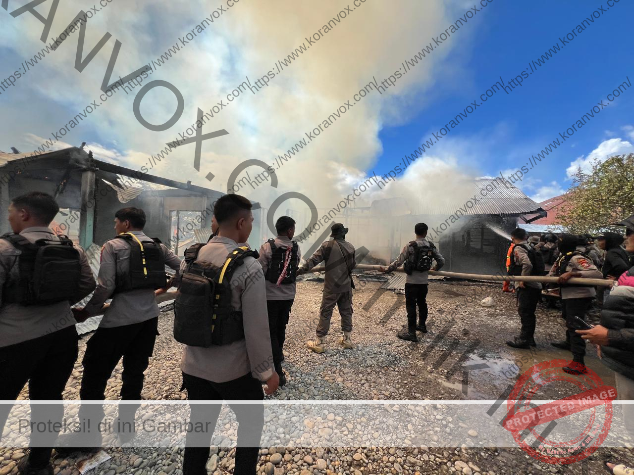 Aksi pemadaman tersebut diperkuat oleh puluhan personel Polres Jayawijaya yang bersama warga bahu membahu di TKP.