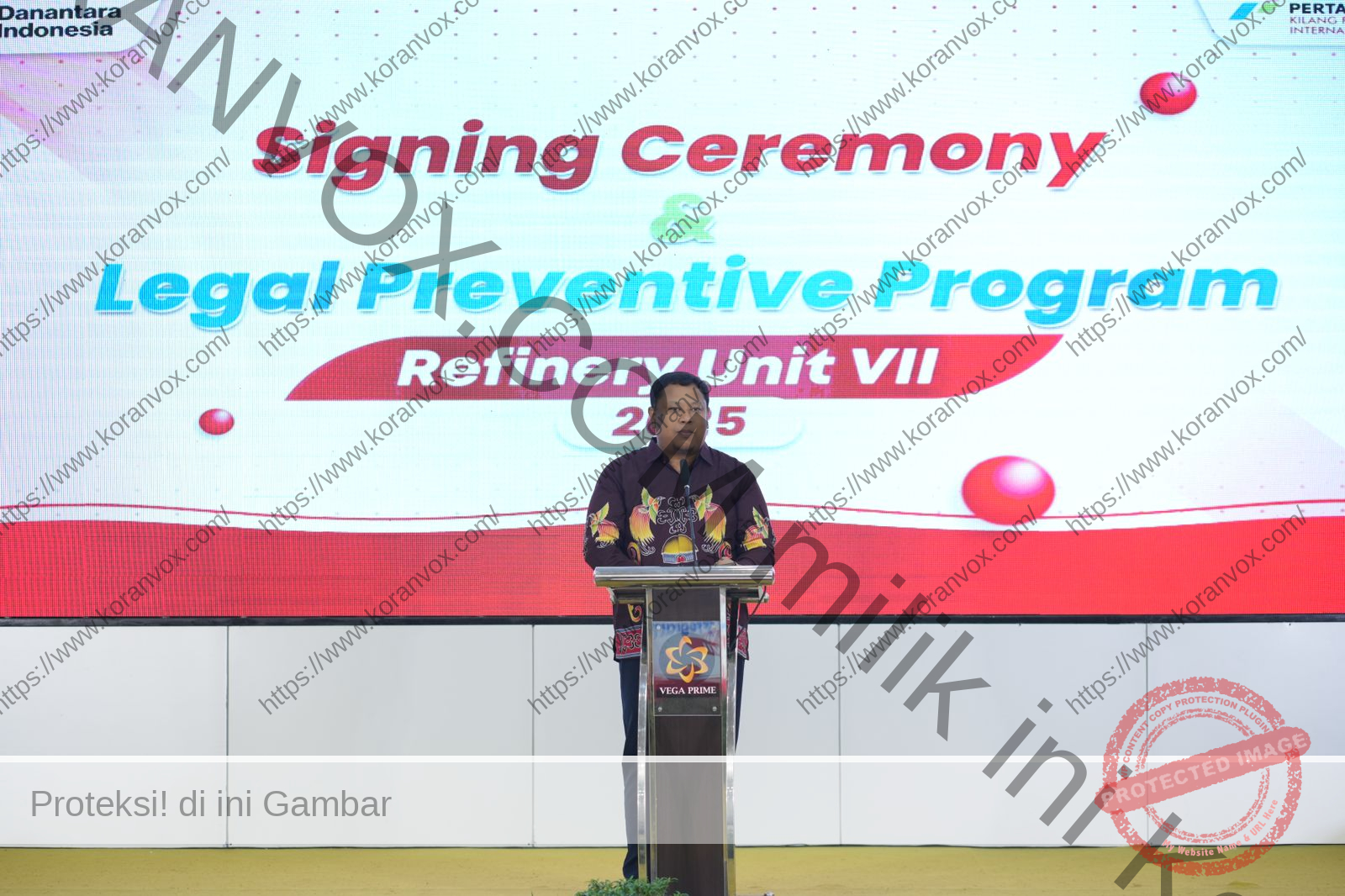 General Manager PT KPI RU VII Kasim, Yodia Handhi Prambara dalam sambutannya menyampaikan komitmen kuat Kilang Kasim untuk memiliki pedoman hukum yang baik sebagai langkah menuju kehandalan Kilang yang berkelanjutan.