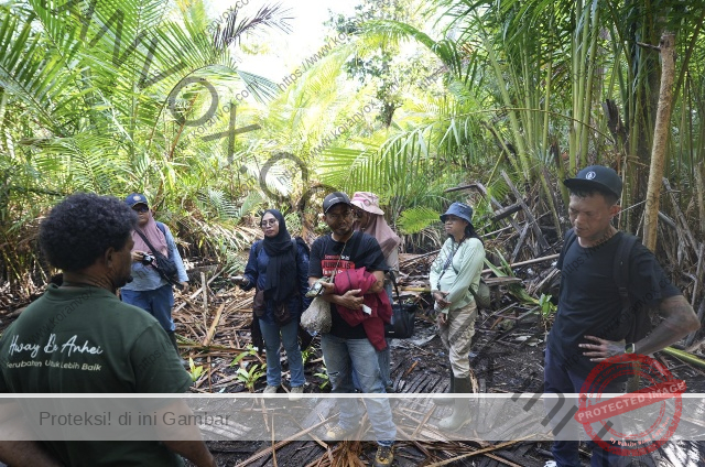 Kegiatan media visit ditutup dengan atraksi khas kampung seperti menogok sagu dan menikmati ulat sagu, yang diikuti para peserta dengan penuh antusias.