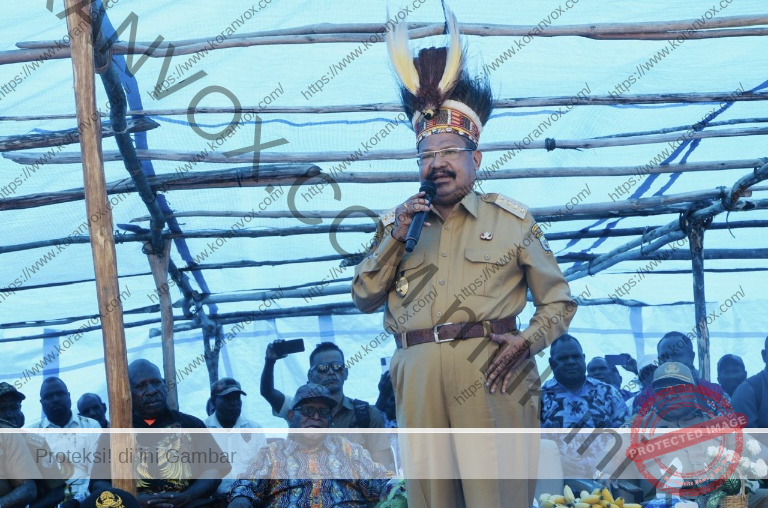 John Tabo menyampaikan rasa terima kasih kepada masyarakat Kembu atas dukungan besar yang diberikan kepadanya sejak masa pemilihan hingga kini menjabat sebagai Gubernur Papua Pegunungan.