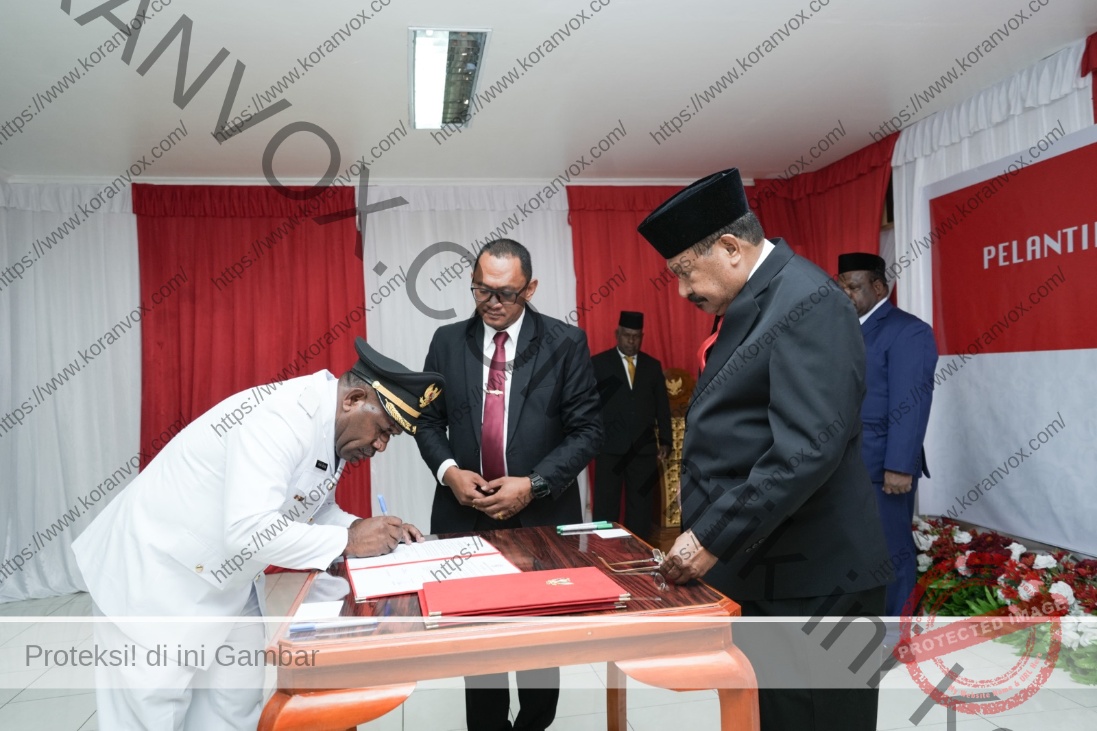 “Dengan adanya surat keputusan Menteri Dalam Negeri, maka hari ini saya sebagai Gubernur secara resmi melantik Saudara Yoas Beon sebagai Bupati Nduga,” ujar John Tabo.
