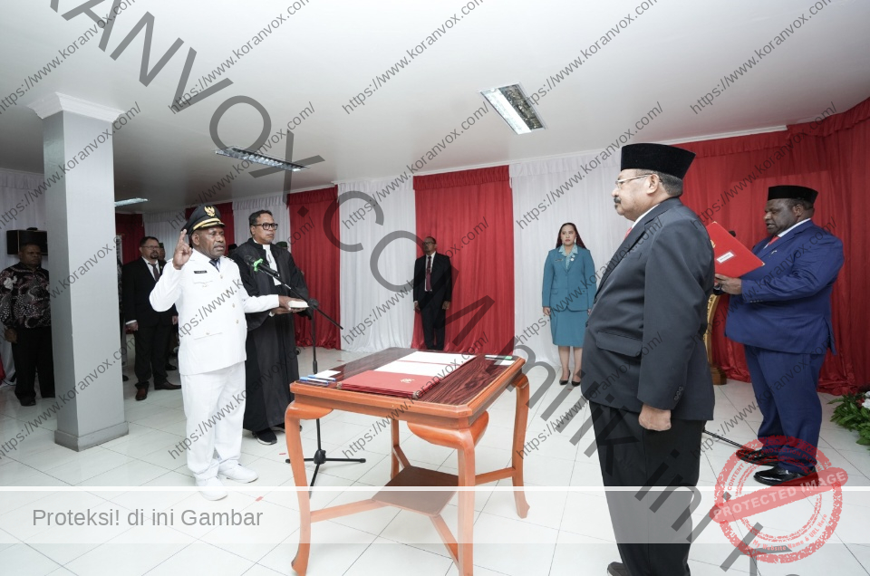 Jayawijaya, KV— Gubernur Papua Pegunungan John Tabo secara resmi melantik Yoas Beon sebagai Bupati Nduga sisa masa jabatan 2025–2030 di Wamena, Kabupaten Jayawijaya, Selasa (30/12/2025).