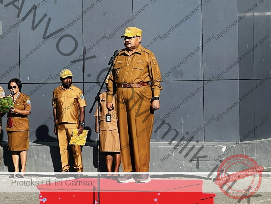 Jayawijaya, KV- Gubernur Papua Pegunungan John Tabo memberikan motivasi dan peneguhan nilai kerja keras kepada aparatur sipil negara (ASN) saat memimpin apel kedua di Kantor Gubernur Papua Pegunungan, Wamena, Kabupaten Jayawijaya, Senin (12/1/2026).