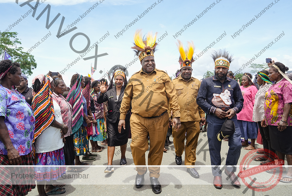 Kedatangan rombongan Pemerintah Provinsi Papua Pegunungan disambut hangat oleh Bupati Nduga, Yoas Beon, beserta jajaran pemerintah daerah setempat. Prosesi adat dan tarian tradisional turut digelar sebagai bentuk penghormatan kepada perwakilan Gubernur, disertai pemasangan mahkota adat sebagai simbol penerimaan secara resmi.