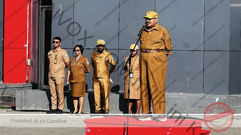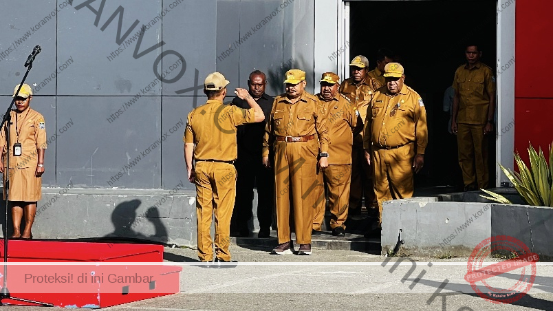 Jayawijaya, KV- Gubernur Papua Pegunungan John Tabo memimpin apel kedua bersama aparatur sipil negara (ASN) di lingkungan Pemerintah Provinsi Papua Pegunungan yang berlangsung di Kantor Gubernur Papua Pegunungan, Wamena, Kabupaten Jayawijaya, Senin (12/1/2026).