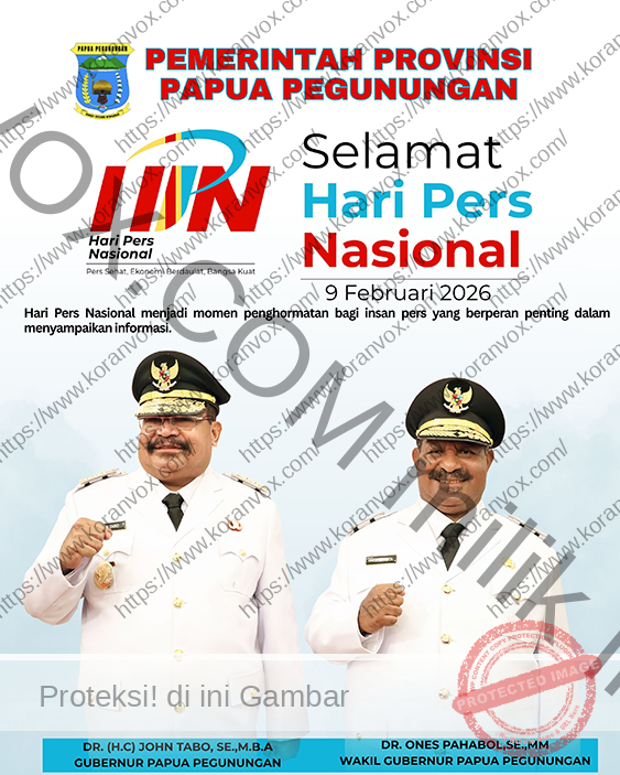 Jayawijaya, KV — Gubernur Papua Pegunungan John Tabo dan Wakil Gubernur Ones Pahabol menyampaikan ucapan selamat Hari Pers Nasional 2026, 9 Februari ini.