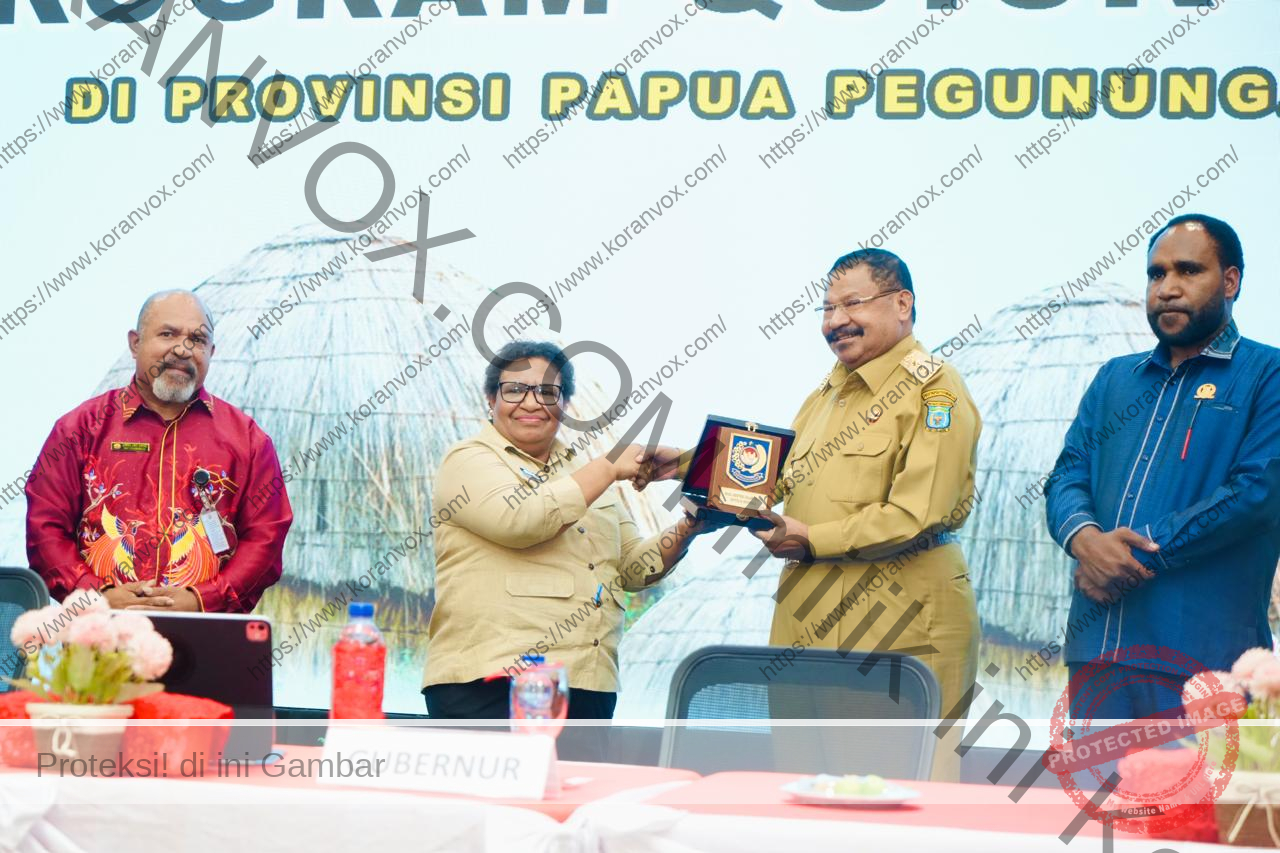 Wakil Menteri Dalam Negeri, Ribka Haluk, menyerahkan penghargaan tersebut kepada Gubernur Papua Pegunungan, John Tabo, dalam Rapat Koordinasi Program Quick Win di Provinsi Papua Pegunungan yang digelar di Wamena pada Senin (20/10/2025).