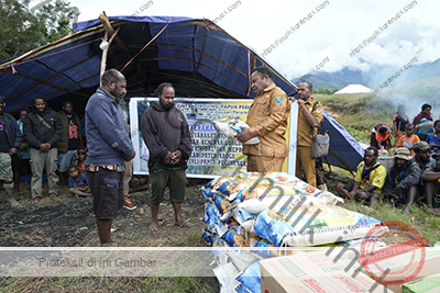 Kepala Dinas Sosial Provinsi Papua Pegunungan, Yanius Telenggen, mengatakan penyaluran bantuan tahap pertama dilakukan di dua titik kumpul keluarga duka yang berada di Wamena.