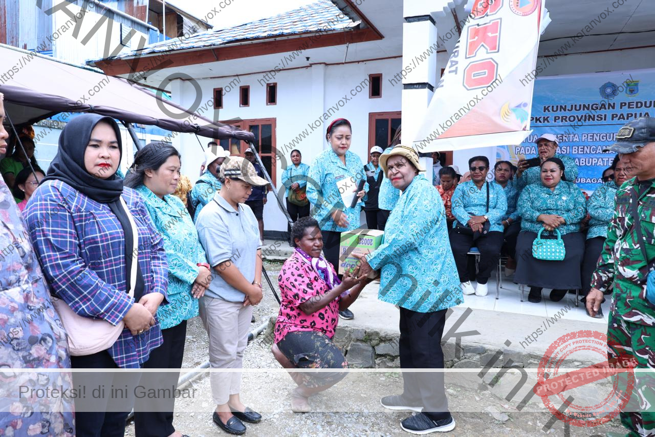 Karubaga, KV – Tim Penggerak Pemberdayaan dan Kesejahteraan Keluarga (TP PKK) Provinsi Papua Pegunungan menyalurkan bantuan sosial kepada warga korban kebakaran di Karubaga, ibu kota Kabupaten Tolikara, yang terjadi pada pekan lalu.