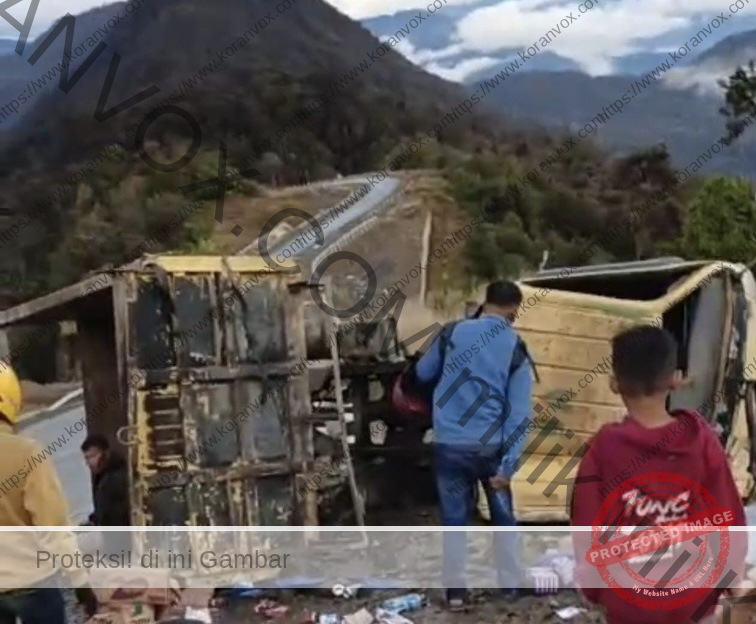 Tolikara, KV — Kecelakaan tunggal terjadi di jalur ekstrem Puncak Mega saat sebuah truk sembako mengalami rem blong dan terguling.