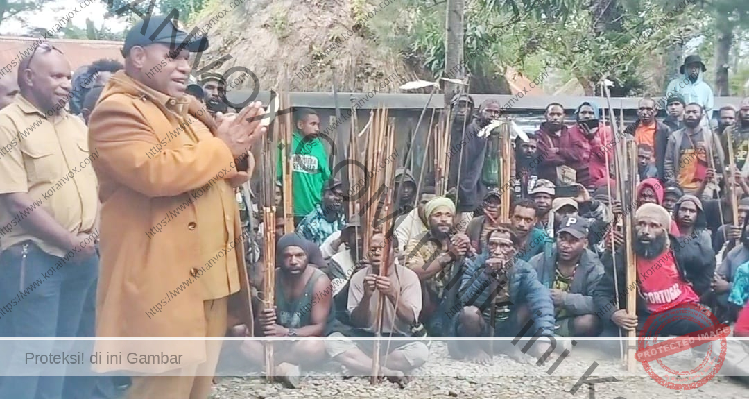 Jayawijaya, KV– Gubernur Papua Pegunungan John Tabo yang di Wakili Wakil Gubernur Papua Pegunungan Ones Pahabol bersama Bupati Jayawijaya Athenius Murib dan Wakil Bupati Lanny Jaya Fredi Ginia  Tabuni turun langsung menemui dua kelompok warga yang bertikai, Selasa (20/1/2026).